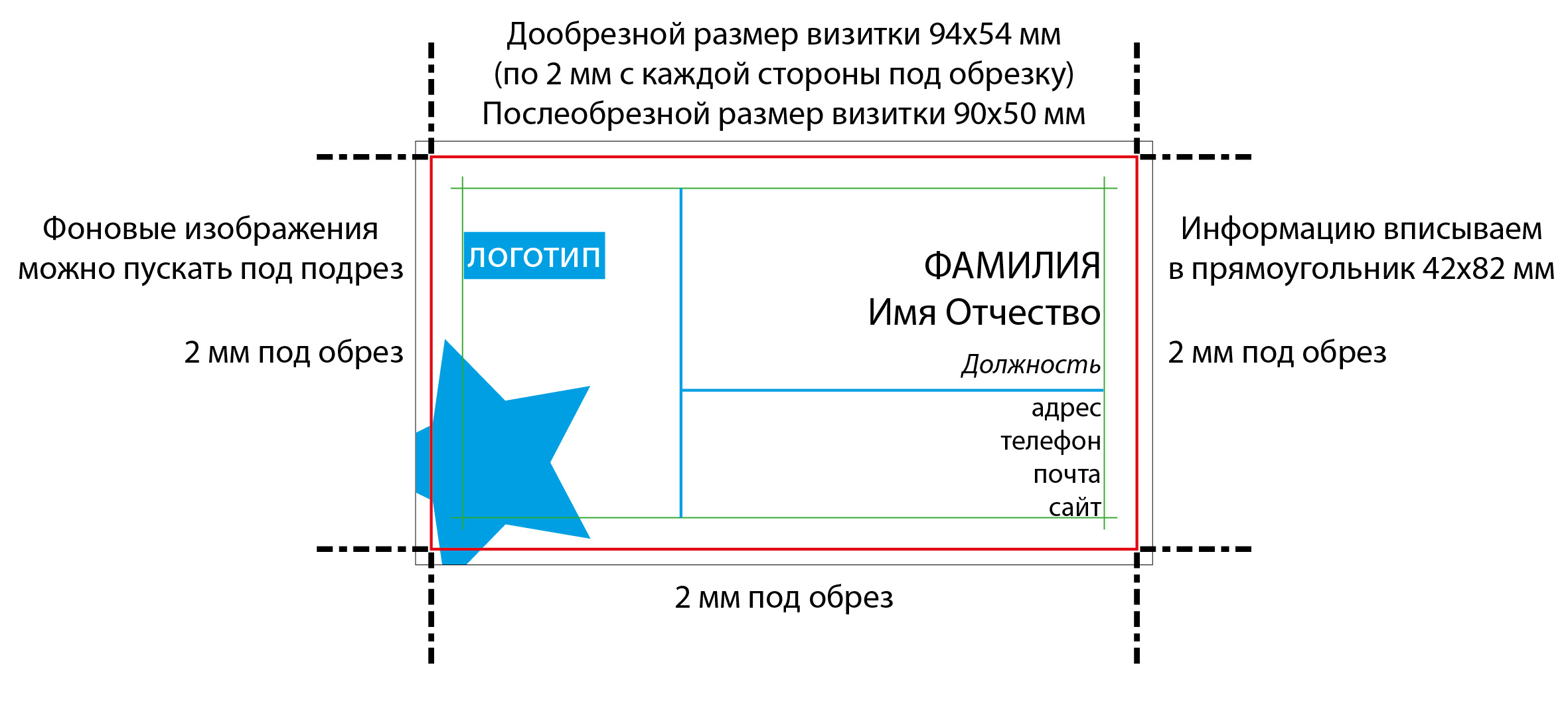 Размеры и содержание визиток