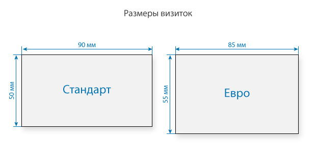 В России, а также странах СНГ принят размер визиток: 90х50 мм.